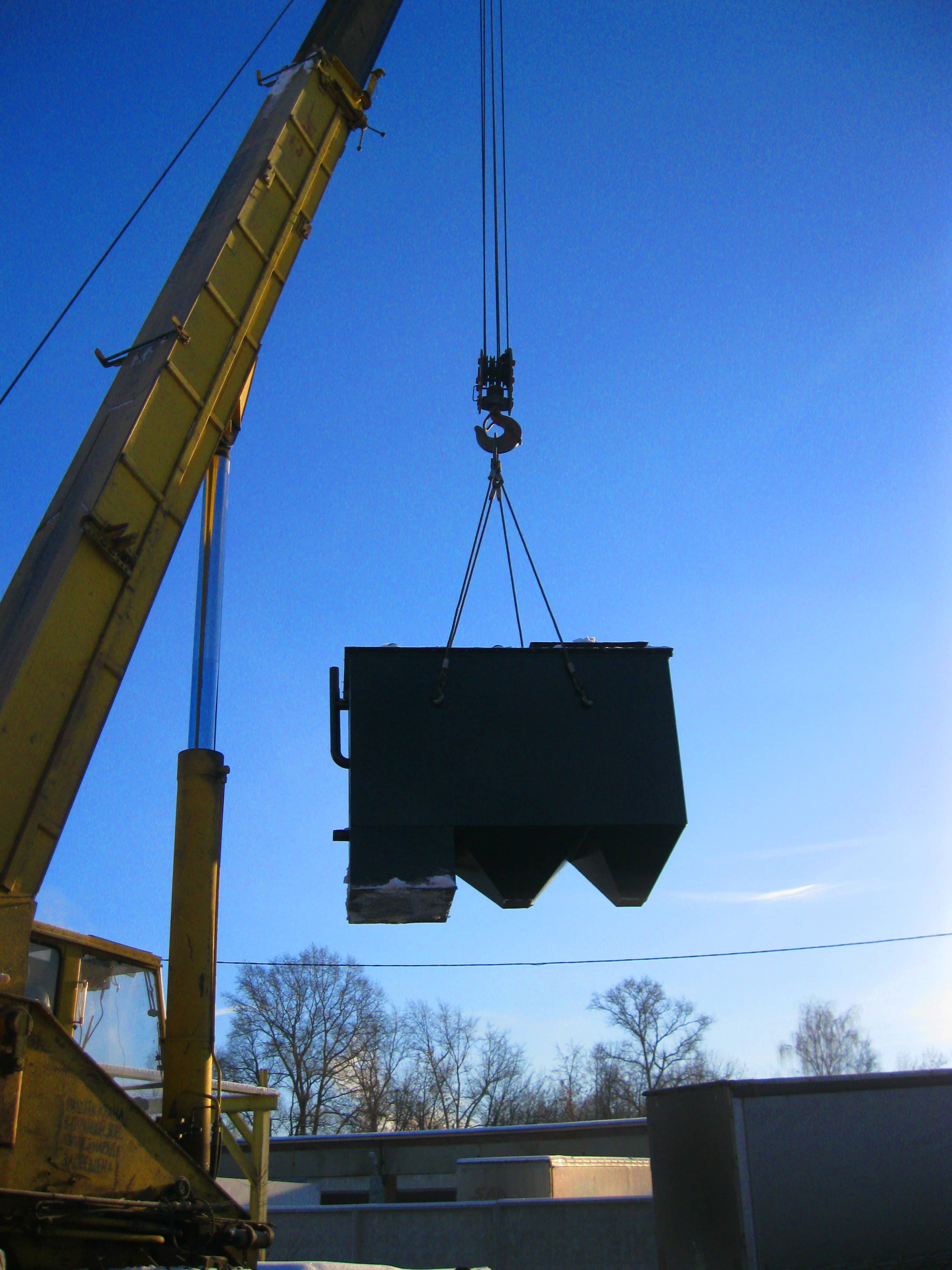 Установка изготавливается из легированной листовой стали толщиной 4 мм, защищенной антикоррозийным покрытием из материалов, специально предназначенных для изоляции конструкций очистных сооружений. Для доступа в отсек очистного сооружения предусмотрен технический колодец.